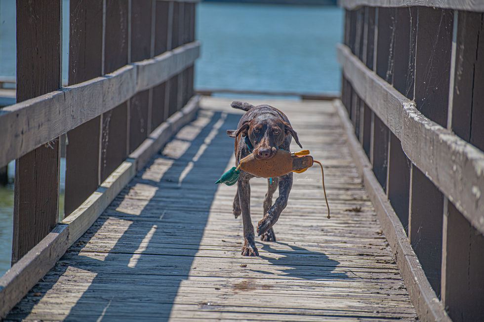 Earning her NAVHDA NA Prize 1 at just 7 months of age was a breeze. No surprise with her pedigree being loaded with NAVHDA Versatile Champions, Master Hunters, and even Dual Champions.